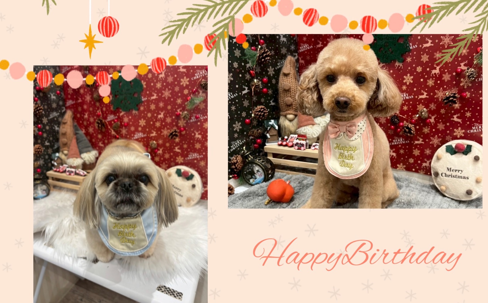 お誕生日のわんちゃんたちです!おめでとうございます🎉本日もご利用ありがとうございました!またのご利用お待ちしております🙇♀️