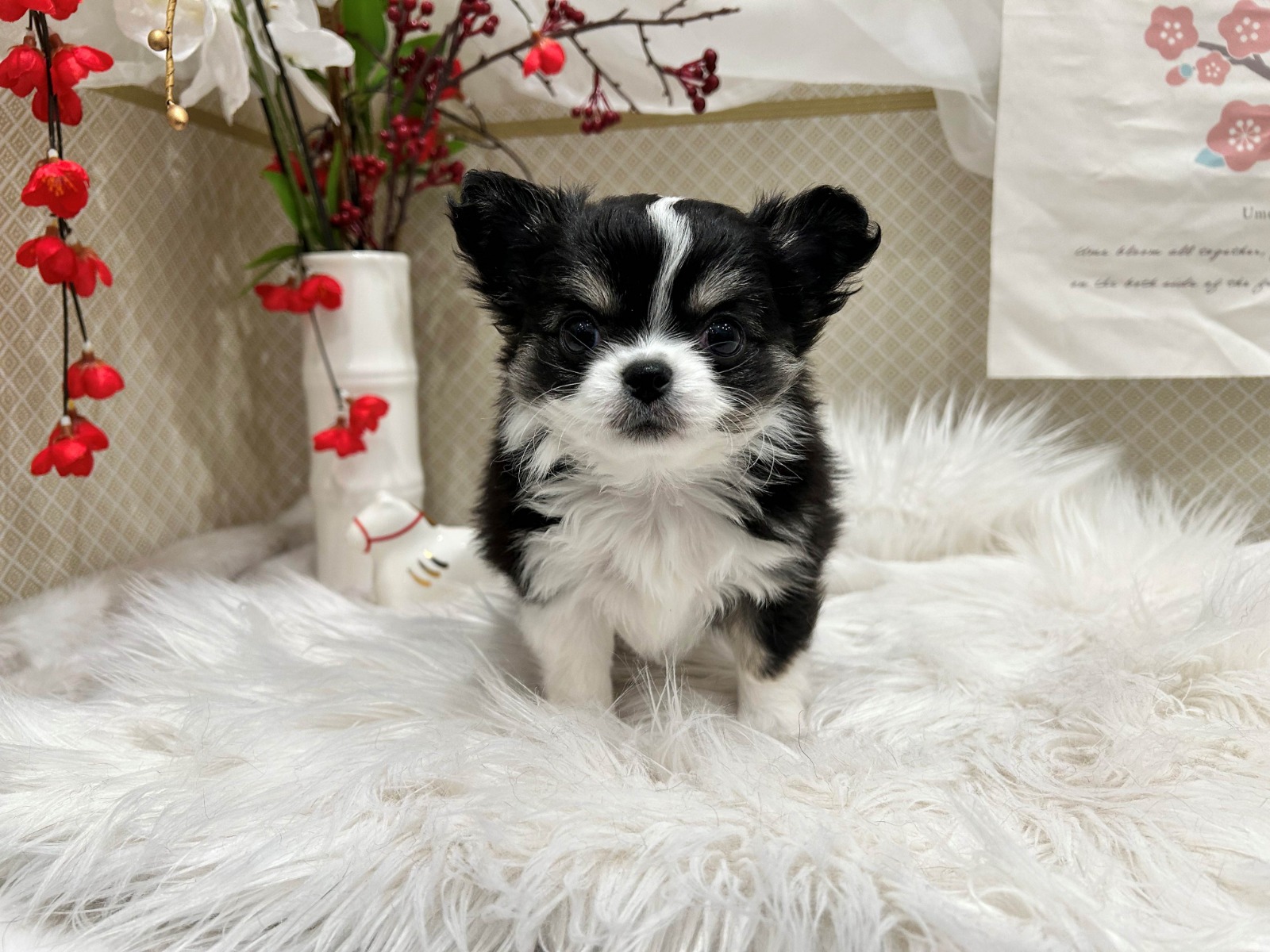 | 毛色 | ブラッククリーム&ホワイト |